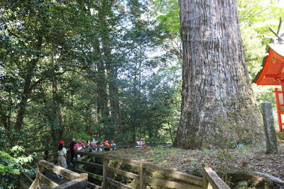 特に大きな杉とヒノキに、子どもたちもびっくり!