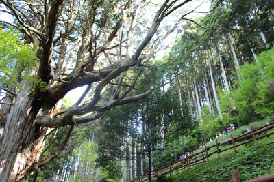 行き先は、八村杉、大久保のヒノキ、カテリエ、民俗芸能博物館。