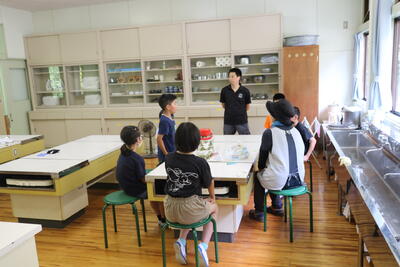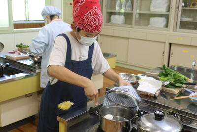 5年生は「ゆでいも」「ゆでたまご」「青菜のおひたし」