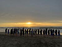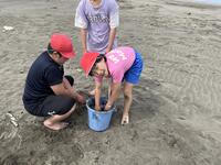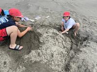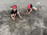 宿泊学習2日目。子どもたちが一番楽しみにしていた砂の造形。はじめて海遊びをしたと言う子もいて、思い出のこる活動になったようです。松尾小の4人もとっても元気です。