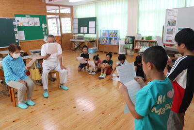 椎葉村では、椎葉村学の学習を総合的な学習の時間で行っています。9月6日に、地域の方を講師に、方言を使った劇を見ていただきました。子どもたちは、イントネーションもばっちり!とお褒めの言葉をいただき、うれしそうでした。
