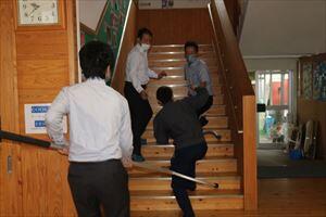 地震を想定した訓練で、「おはしも」を意識して落ち着いた行動することができました。