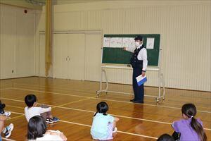 訓練の後に、椎葉駐在所の方に安全に対応するための「いかのおすし」についてなどを教えていただきました。