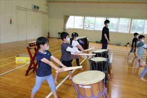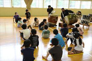 早速太鼓を叩きました。リズムよく叩くことができました。(^^♪