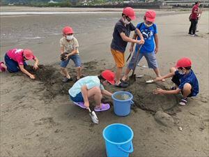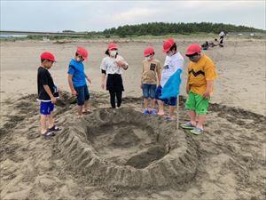 青島神社にいったり、海岸で砂の造形をしたりしました。!(^^)!