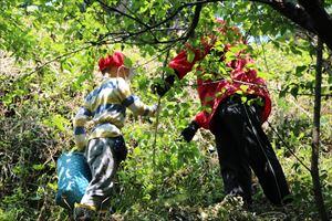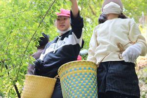 学校周辺の梅の木からたくさんの梅の実を取りました。