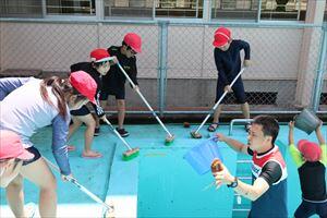 6月6日(月)にプール清掃をしました。(*^^)v