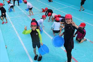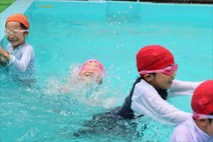 水泳学習で上達したことを発表したり、みんなで水遊びをしたりしました。(*^^)v