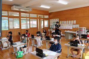 椎葉駐在所の方に協力していただき、不審者役が校内に入って、教員が対応しました。緊張感のある訓練が出来ました。児童もきちんと避難できました。