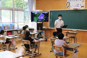 6月8日(水)1・2年生が、大河内小と松尾小でZOOMを利用して学習(ユニット学習)をしました。( ゚Д゚)