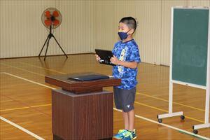 校長先生の話や児童の2学期の目標を含む作文発表のがありました。