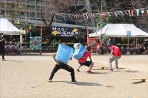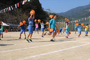 最後はみんなで玉入れ ほぼ同時にゴールしました。