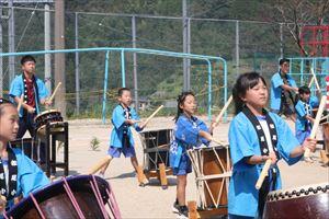 そして、平家子ども大いちょう太鼓を1年生から6年生全員で披露しました。(*^^)v