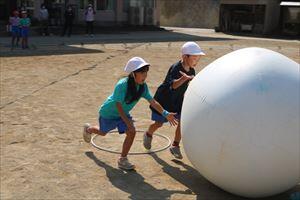 まずは大玉転がし 上手にコロコロできました。(*^▽^*)