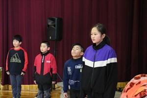 次に、全校群読「われら大いちょうの子」を立派に発表しました。