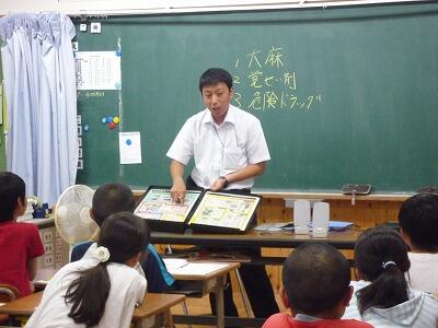 5年生は、副流煙などが及ぼすタバコの害について教えていただき、6年生は、危険ドラッグや麻薬などの恐ろしさについて説明していただきました。みんな真剣な顔で聞き入っていました。