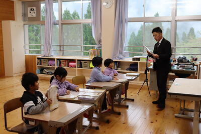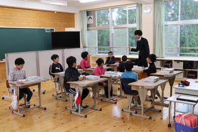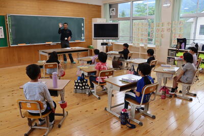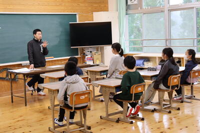 1・2年生が、役場にお勤めの保護者の方のご指導を受けながら