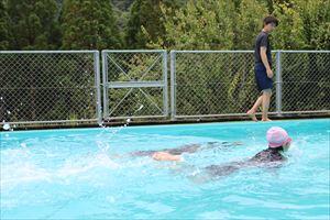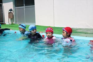 水を嫌がらず、どんどん水に慣れ、友達と楽しく学習しています。