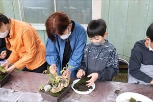 宮崎県技能士会の方に来ていただき、造園(箱庭づくり)をおじいちゃんおばあちゃんたちと一緒に体験しました。(*^^)v