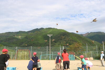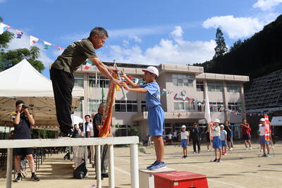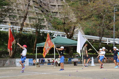 10月1日(日)4年振りとなるお昼をはさむ松尾小・松尾地区合同運動会を行いました。保育園生の徒競走や高齢者の方々との玉入れ、地域の方々による地区対抗リレーなど、地区合同ならではの競技がたくさんあり、大変盛り上がりました。この数年、地域の方々との交流も十分に行えない状況が続いていただけに、子どもたちにとっても大変貴重な交流の場になりました。