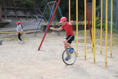 運動会までは、昼休みは応援の練習など運動会一色でした。運動会が終わり、子どもたちの興味関心で過ごす昼休みが戻ってきました。スコップを持って運動場にうまっている石を掘り起こすことに夢中になっている子、乗れなかった一輪車の練習に励む子、数が少なくなった昆虫を捕まえる子。みんな楽しそうです。