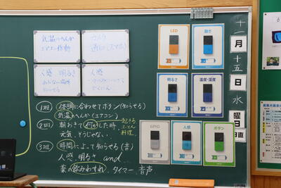3・4年生はメッシュという機器を使ったプログラミング学習をしています。