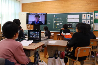 松尾小の5年生は、ZOOMで不土野小の先生が行う社会の授業に参加しました。