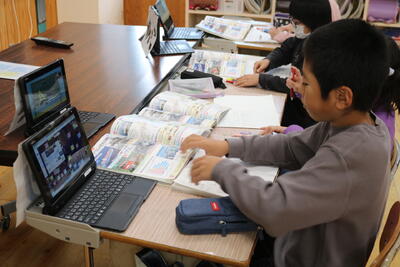 多目的室に並べた見本の新刊の中から、読みたい本を選ぶ新刊図書選びを全校児童で行いました。やはり、大谷選手の本は人気上位でした。ほかにも猫の絵本や子どもたちが大好きなサバイバルシリーズなど、子どもたちも夢中になって本選びをしていました。