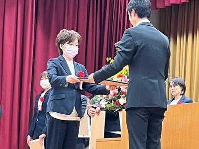 画像は、本校の前PTA会長と前家庭教育学級長が表彰をされて