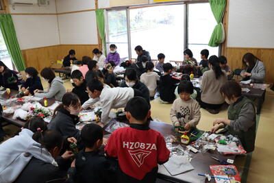 午後は、親子リース作り(家庭教育学級)を行いました。いろいろな材料を使って、親子で個性あふれる素敵なリースを作ることができました。