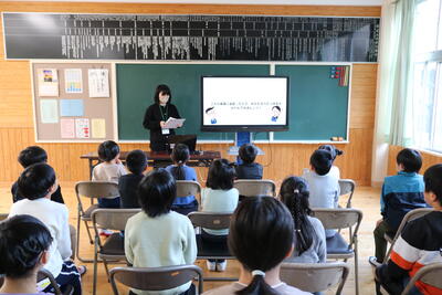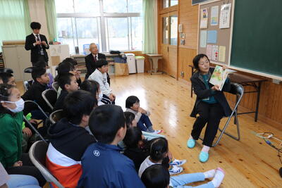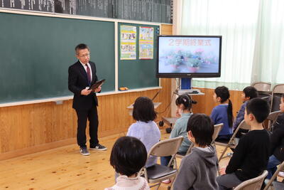 11月28日、人権の花感謝状贈呈式がありました。宮崎地方法務局延岡支局の方や椎葉村人権擁護委員の方、椎葉村総務課の方が来校され、感謝状の贈呈や人権に係る学習、読み聞かせをしていただきました。子どもたちもとても興味深く、お話を聞いていました。