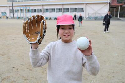 本校にもグローブが届きました。子どもたちも目をキラキラさせて