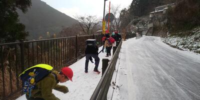 2月16日は遠足でした。子どもたちは、家庭からおにぎりを持ってきて、豚汁を作って食べました。その後、地域の方から、昔の小学校跡や大イチョウ、椨の木などを巡り、話を聞きました。子どもたちは、松尾のよさを再認識したようでした。