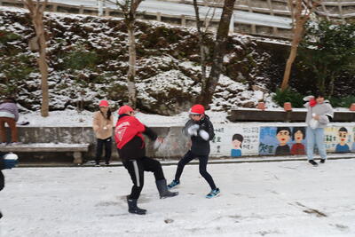 1月24日、朝から一面雪景色でした。子どもたちも行き交う車や滑りやすい道路に気をつけて登校。学校に着くなり、運動場に駆け出し、雪合戦、かわいい雪だるまづくりを楽しんでいました。
