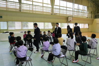 1・2年生が、役場にお勤めの保護者の方のご指導を受けながら
