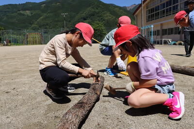 椎茸のこま打ち体験をしました。毎年、こま打ちをさせていただいているので、2年生以上は慣れたもの。上手に椎茸の原木にこまを打ち込んでいました。いろいろ準備などしてくださった中竹様、ありがとうございました。