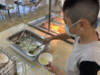 ウォークラリーでぐったりのはずなのに、フライドポテトやゼリーをおかわりしています。疲れて、食べて、今夜はぐっすりかな。