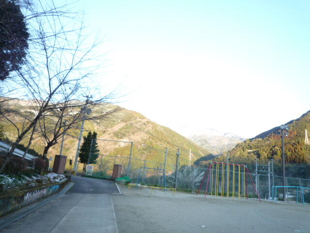 松尾地区は、昨夜、雪が降りました。遠くに見える山々が雪で白くなっています。