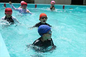 天気もよく、1年生ははじめてのプールを楽しみました。(^^♪