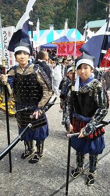 「椎葉平家まつり2017」日曜日には松尾小学校の子どもたちもたくさん平家方、源氏方に扮して行列に参加しました。先生方も参加しました。