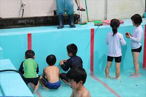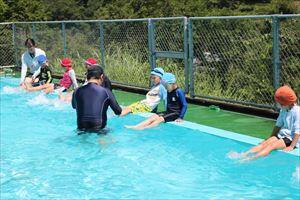 水を嫌がらず、どんどん水に慣れ、友達と楽しく学習しています。