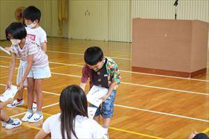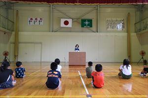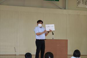 次に、校長先生が1学期の全校の頑張りやいのちを大切にすることについてお話をされました。みんな真剣に話を聞きました。また、金丸先生が夏休みの過ごし方や注意点について分かりやすく具体的にお話をしました。