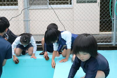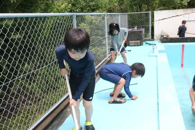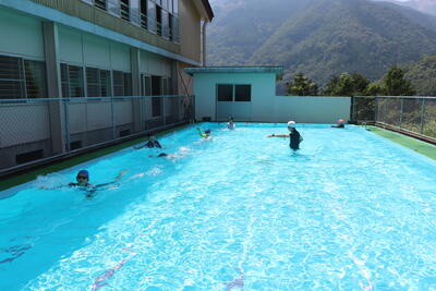 いよいよ子ども達が楽しみにしているプールの授業が始まりました。ただ、高学年のプール開きの日は晴天だったのですが、低・中学年のプール開きは雨で水温も低く、延期になってしまいました。プールはきれいで、晴れた日は太陽に照らされ、まるでリゾート地のプールみたいです。さあ、この1カ月半でどのくらい泳げるようになるでしょうか。