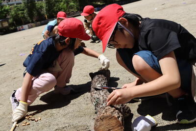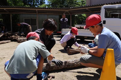 椎茸のこま打ち体験をしました。毎年、こま打ちをさせていただいているので、2年生以上は慣れたもの。上手に椎茸の原木にこまを打ち込んでいました。いろいろ準備などしてくださった中竹様、ありがとうございました。