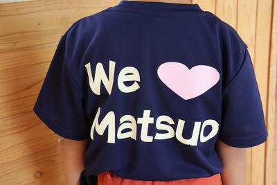 松尾小学校では、毎年「We♡Matsuo」のTシャツ、ポロシャツを作っています。子どもたちはまるで制服のように、学校で地域でイベントで着ています。子どもたちだけでなく、保護者、教師、地域の方々も着ています。今年は、松尾小学校創立150周年を記念し、胸に「150」のロゴを入れています。とてもかわいいTシャツ、ポロシャツです!