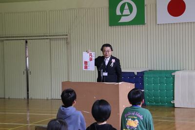 次に校長先生の話でした。凡事徹底(時を守り、場を清め、礼を正す)を誰にも負けないくらい、毎日一生懸命続けて、みんなから憧れる素敵な人になってほしいという内容でした。