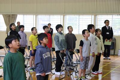 それが終わると、児童のピアノ伴奏に合わせて、校歌を最後の3番まで歌いました。元気で美しい歌声に、松尾小学校に新しく着任された先生方は、そのメロディーや歌詞の内容を理解することができたと思います。