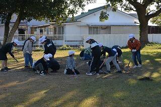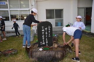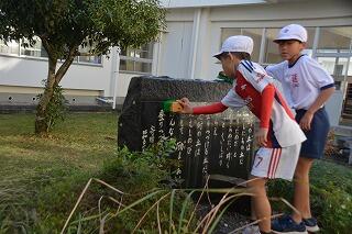 今週から、4年生の「幸動プロジェクト」が始動し始めました。石碑を磨いたり、砂場の再生をしたりみんな一生懸命です。