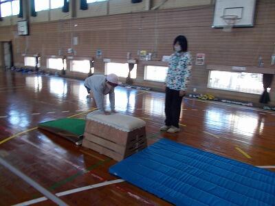 2年生が器械・器具を使った運動遊びを体育館で行っていました。