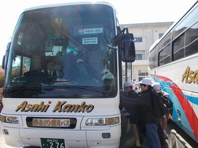 注意を聞いた後、バスに乗って出発!